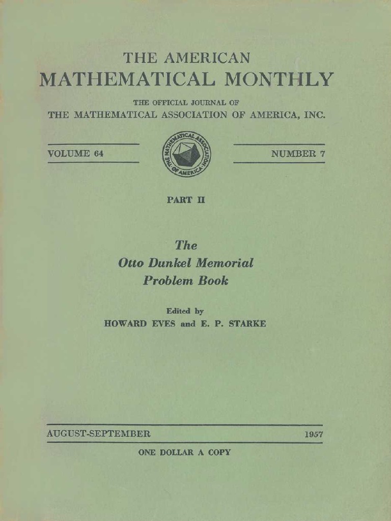 The Otto Dunkel Memorial Problem Book Vol Ii Howard Whitley Eves E P Starke Pdf Pdf